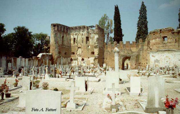La rocca nel 1980 quando ospitava un cimitero veramente unico.